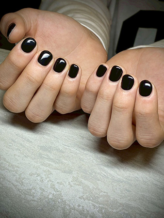 ブラックのシンプルワンカラー。清潔感があり、ネイル初心者の方にもおすすめです。
