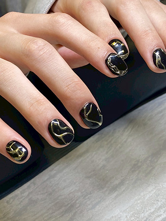 ブラック×ゴールドのひび割れアート。インパクトがありながらも、クールにまとまるデザインです。